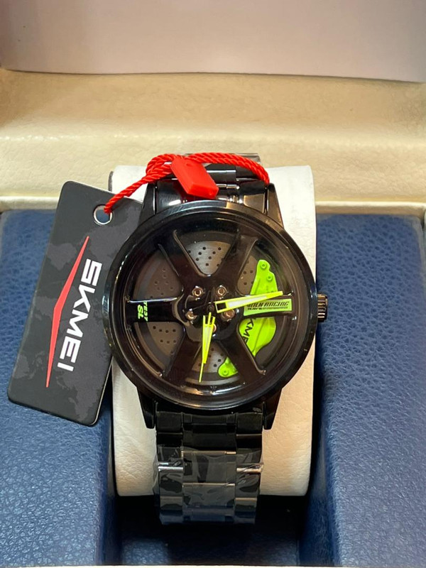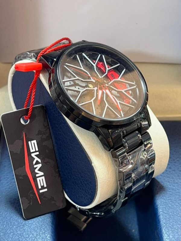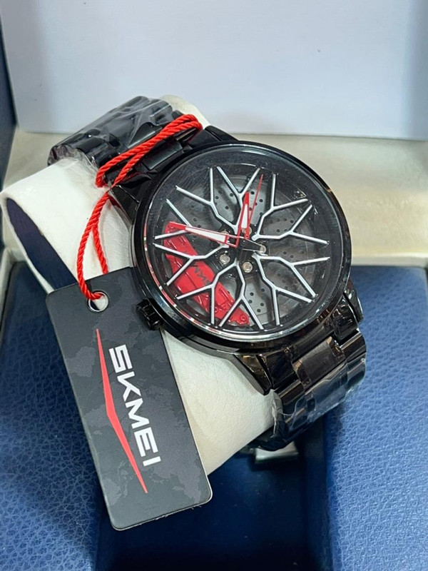 وساعات Skmei 1824 للرجال على الموضة مع حزام من الفولاذ المقاوم للصدأ ومينا بعجلة السيارة الرياضية - أسود / أحمر/ اخضر | 1824 أحمر